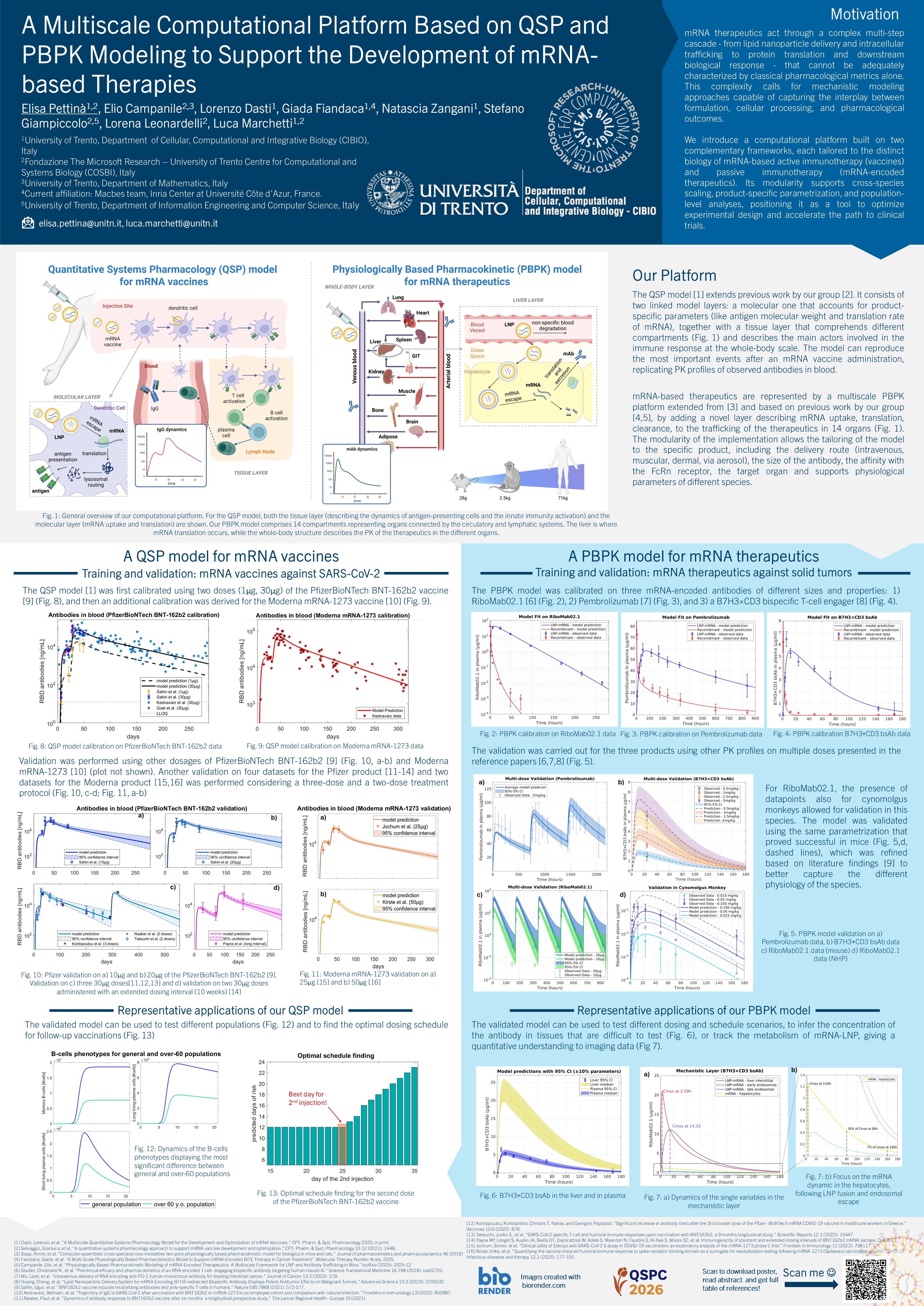 Background: Messenger RNA (mRNA)-based therapeutics offer scalable, cost-effective platforms for delivering vaccines and protein therapeutics. However, unlike conventional drugs, mRNA therapeutics require cellular uptake and translation before exerting their effects. This multi-step cascade benefits from QSP or, in general, mechanistic descriptions capturing delivery vehicle dynamics, intracellular trafficking, and translation kinetics[1]. We developed a platform of two complementary models supporting mRNA-based vaccines and monoclonal antibodies (mAbs), providing a unified modelling solution for respectively passive and active mRNA immunotherapy.